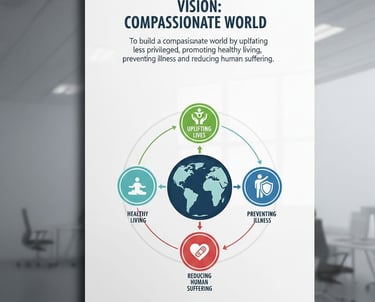 To build a compassionate world by uplifting the less privileged, promoting healthy living, preventing illness and reducing human suffering.